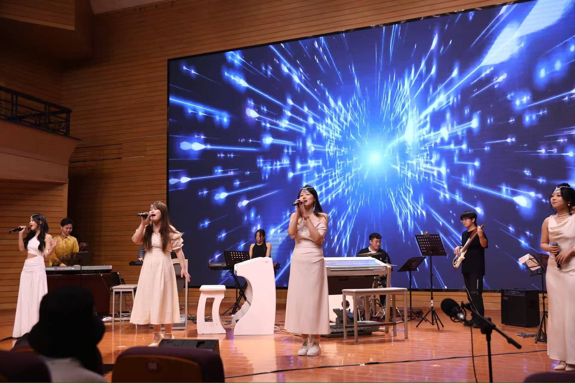 作为本学期流行音乐系教学融合的重点成果——流行音乐系学生乐队,在此次音乐会首次亮相表演,成为本次音乐会的一个亮点。由现代乐器和电子键盘专业学生组成的流行音乐系乐队,凭借默契的配合协作,扎实的专业功底,将一首首流行风格经典曲目伴奏演绎得极具感染力。无论是精妙绝伦的器乐独奏,还是声乐与乐队珠联璧合的表演,都让台下观众眼前一亮,流行乐队丰富多变的演出绽放着不一样的青春活力,赢得台下观众阵阵热烈掌声。此次音乐会不仅是对学生乐队排演学习成果的全面检验,为他们搭建起展示自我的舞台,更为他们未来在音乐道路上稳步前行助力。