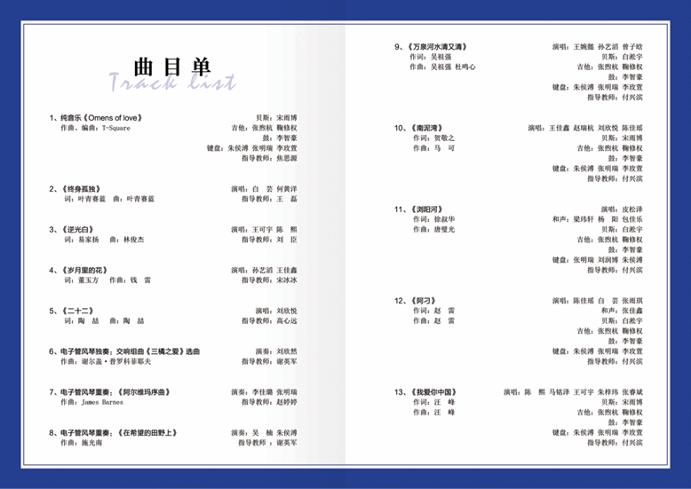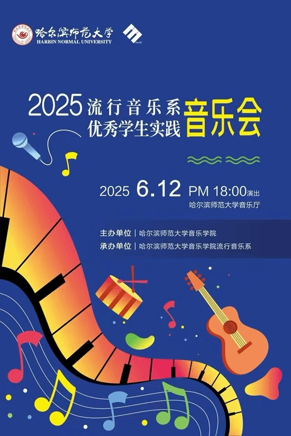 为充分展现哈尔滨师范大学流行音乐系学生的专业风采,在学院领导亲切关怀与支持和流行音乐系精心策划下,2025年6月12日18时10分,在哈尔滨师范大学江南音乐厅隆重举办“2025流行音乐系优秀学生实践音乐会”。
