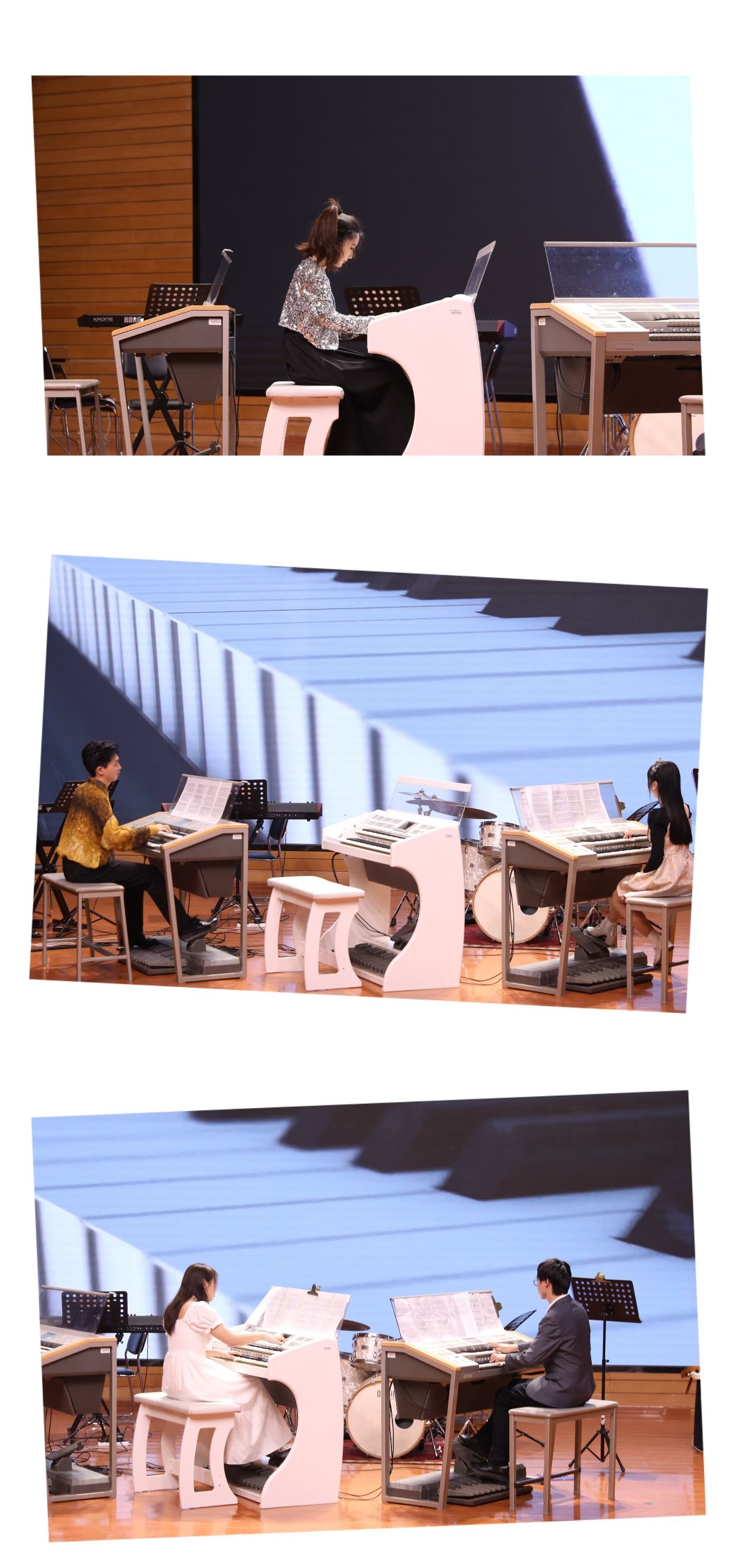 电子键盘专业优秀学生以它们独特的艺术魅力,为整场演出增添了别样的色彩。电子管风琴独奏《三橘之爱》,这首极具难度的古典音乐作品,演奏者凭借精湛技艺驾驭复杂的节奏与多变的音乐风格,赢得满堂喝彩。二重奏《阿尔维玛》的演奏者配合默契,在键盘上挥洒自如,将乐曲独特的旋律与情感完美传递。二重奏《在希望的田野上》以明快的节奏、丰富的音色、深情委婉的旋律,生动地描绘出一幅充满生机的田园画卷。