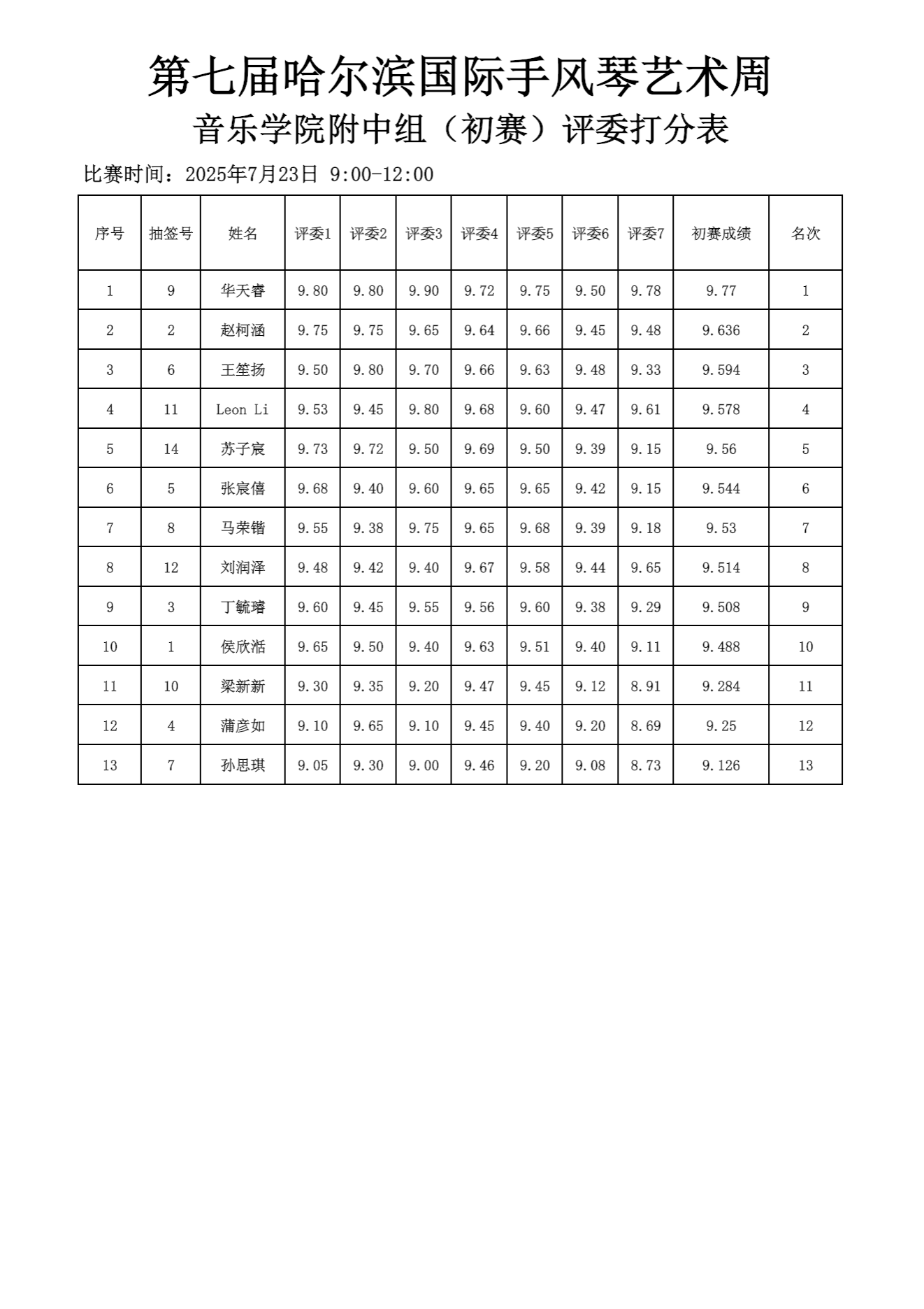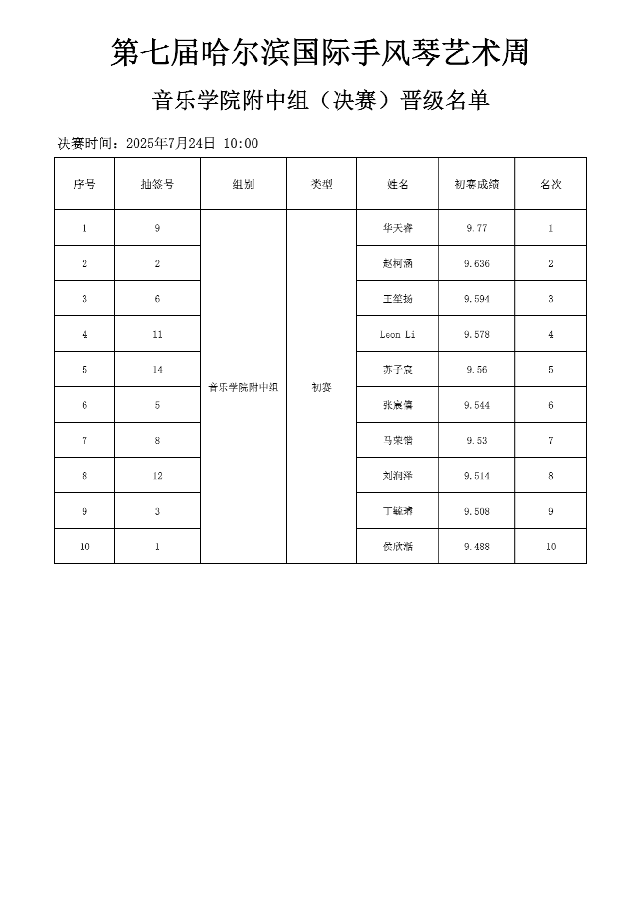 第七届哈尔滨国际手风琴艺术周音乐学院附中组晋级名单及初赛成绩单公示