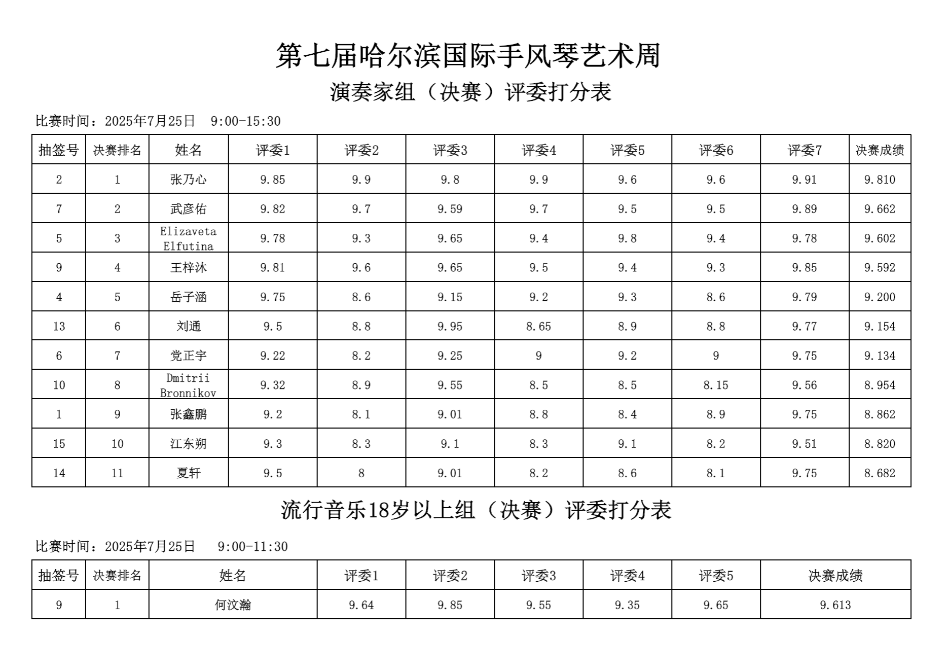 第七届哈尔滨国际手风琴艺术周比赛成绩公示(二)