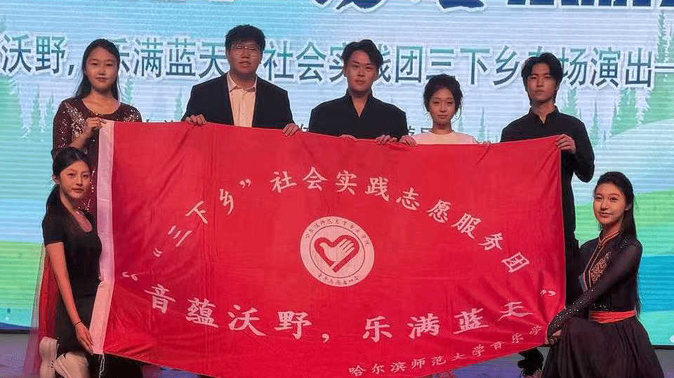 7月21日至8月8日,音乐学院“音蕴沃野,乐满蓝天”社会实践团在团委书记马鸣带领下,赴伊春市汤旺县开展暑期“三下乡”活动。实践团应邀参与汤旺县“红松文化季,汤旺乐游集”文化艺术节,每晚献上声乐、武术、舞蹈及器乐演奏等节目,以艺术赋能乡村文化振兴,践行“艺术为民”宗旨;还深入汤旺河国家森林公园开展沉浸式学习,了解当地生态保护举措与成效,深化对国家生态文明战略的认知。