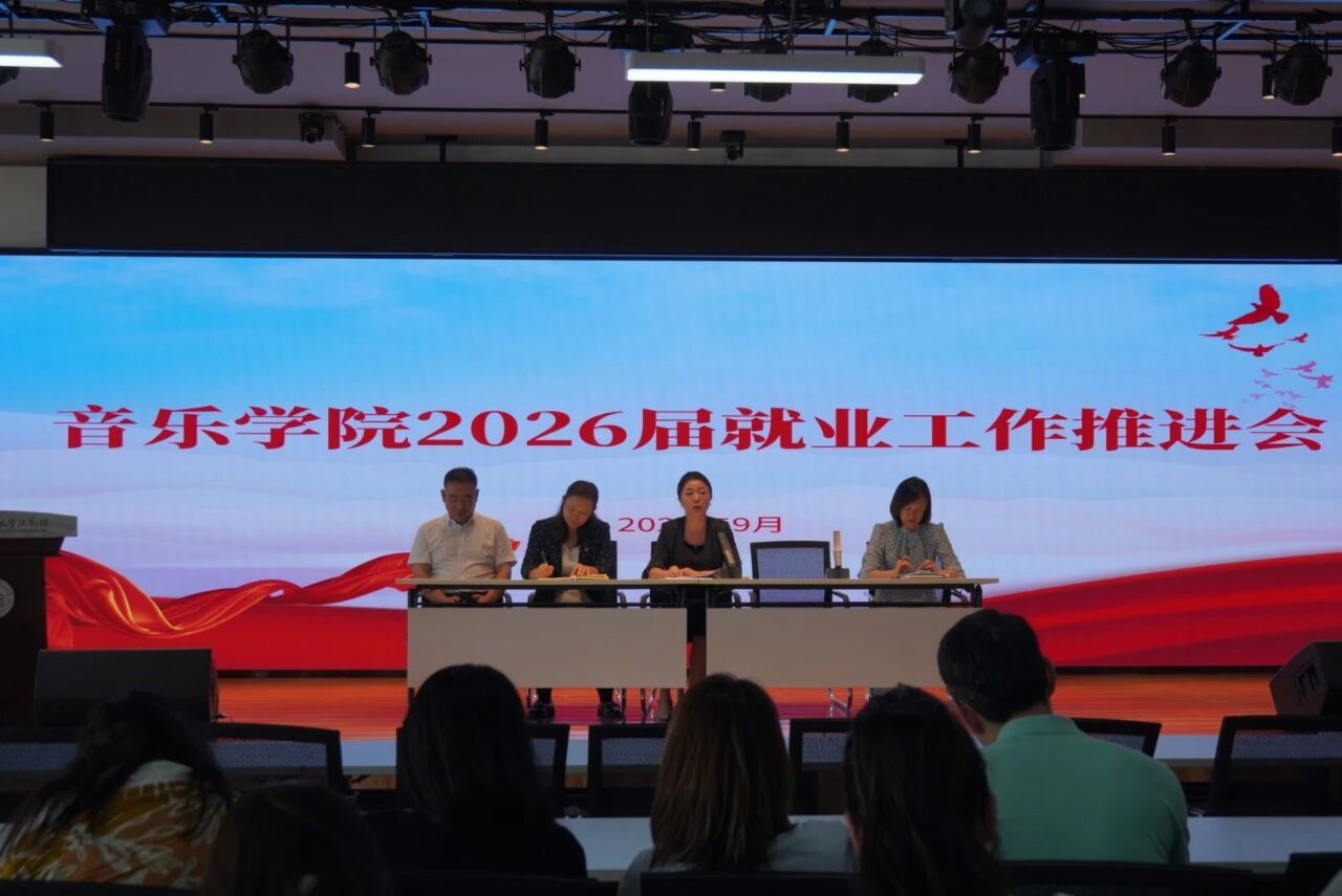 为全面推进落实2026届毕业生就业工作,切实有效提升毕业生就业质量,9月3日下午,音乐学院在双创园二楼召开2026届毕业生就业工作推进会。音乐学院领导班子、全体教职工参加会议,会议由党委书记范晓丹主持。