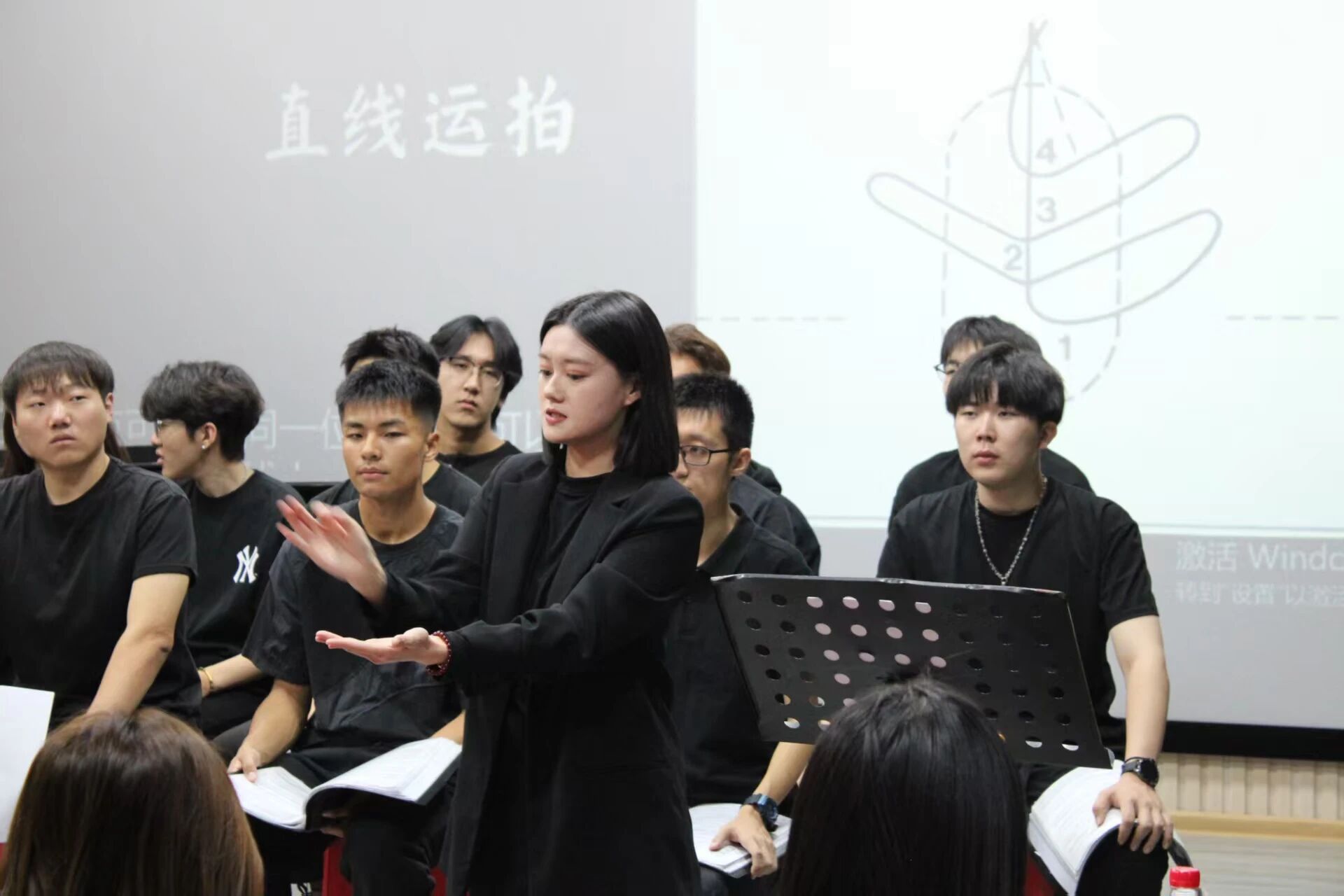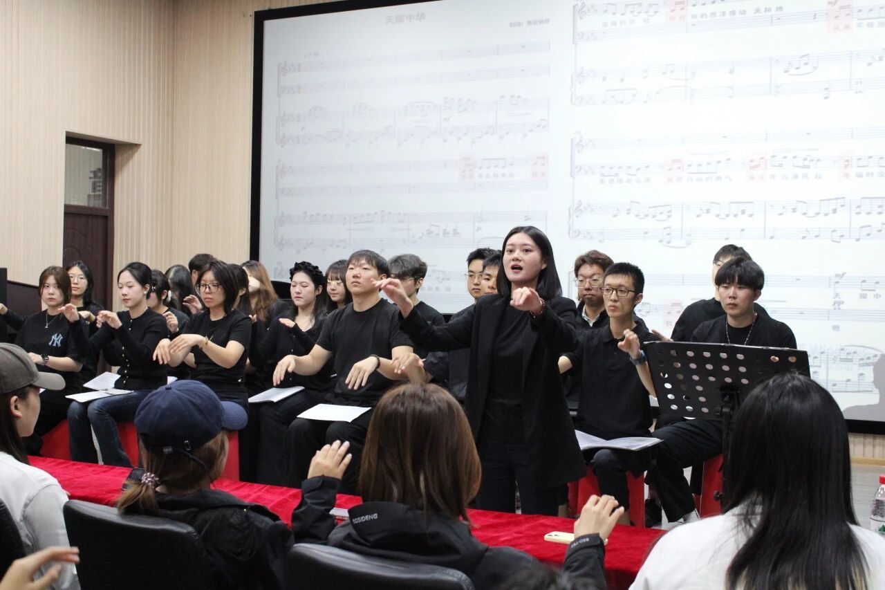罗菁老师以《四拍子的指挥技法及音乐思政元素——以改编合唱作品〈天耀中华〉为例》为题,打造了一堂兼具技术教学与思政内涵的音乐课堂。罗老师首先围绕四拍子指挥图式展开教学,详细讲解并示范四四拍指挥手法,随着《天耀中华》乐谱在幕布上呈现,台上同学跟随其指挥完整展示了作品各部分旋律,两个声部独立又相互配合,台下同学则认真聆听旋律并专注记录指挥手势;进入作品第二段、第三段教学环节,罗老师先进行示范,随后从台下选取一位同学上台展示指挥技巧,并指导同学完成演唱,通过理论讲解、示范与实践结合的方式,既帮助学生掌握了四拍子指挥技法,也引导大家在音乐学习中感受作品精神,让个人成长与民族复兴同频共振,推动《天耀中华》的精神火种进一步传递。讲座结束后,新媒体中心副主任王靖轩为罗菁老师颁发“音微课堂”第99期主讲人的荣誉证书。