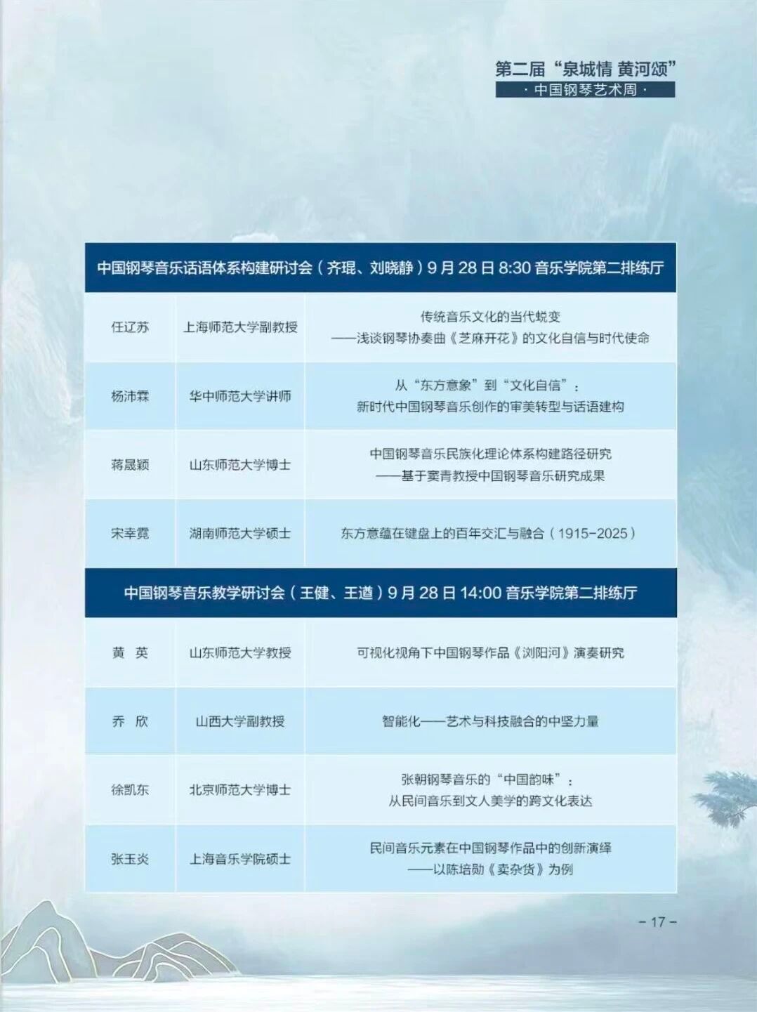 在中国钢琴音乐诞生110周年与中国人民抗日战争暨世界反法西斯战争胜利80周年的重要历史节点,9月26日—9月28日,由山东师范大学、山东省音乐家协会联合主办,山东师范大学音乐学院、山东省学校美育改革发展中心及山东师范大学中国钢琴音乐发展研究中心共同承办的第二届“泉城情 黄河颂”中国钢琴艺术周在山东师范大学隆重召开。我院键盘系孙晓婕教授应邀参加并作论文宣讲。