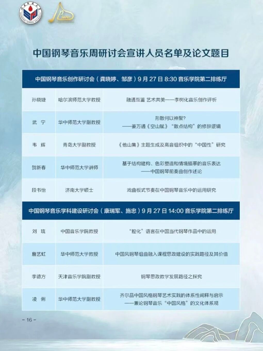 本届艺术周通过“创作—展演—研究”三位一体的活动形式,举办了学术讲座、大师课、讲演音乐会、展演比赛和专题研讨会,为作曲家、钢琴家、理论学家们搭建了高水平的学术交流平台。共同探讨中国钢琴音乐话语体系及学科建设,实现中国钢琴音乐从实践积累向话语体系建构的跨越,推动中国钢琴音乐的传承与创新。孙晓婕老师受邀参加9月27日上午的中国钢琴音乐创作研讨会。此场研讨会由中央音乐学院作曲系龚晓婷教授、上海音乐学院音乐学系邹彦教授共同主持,