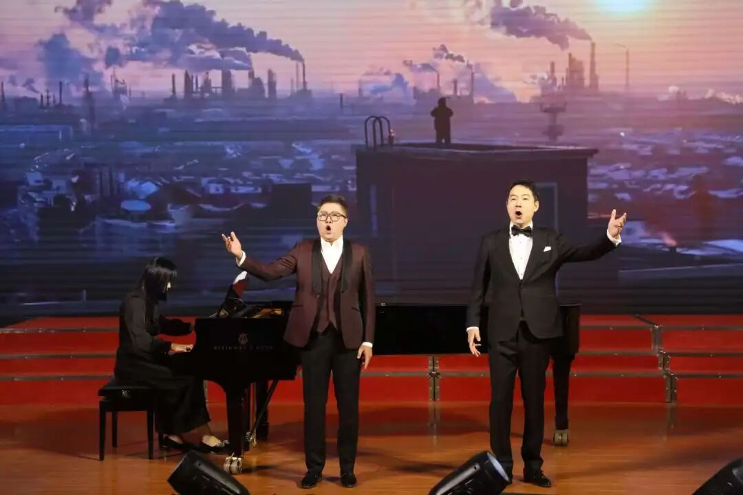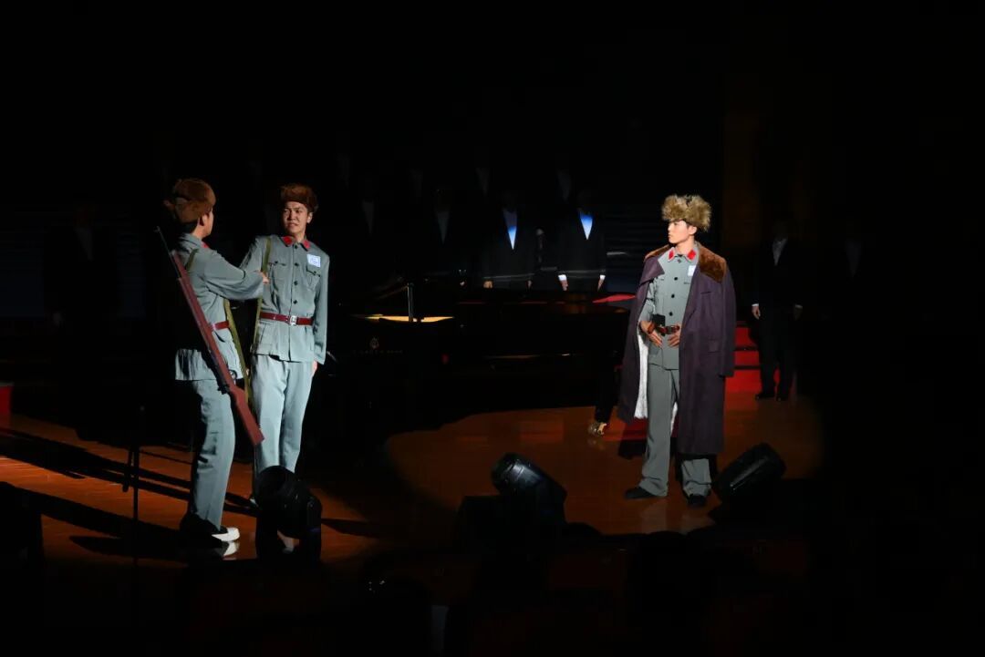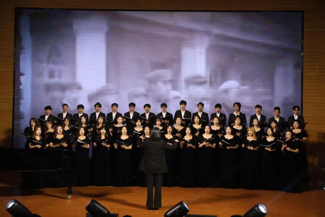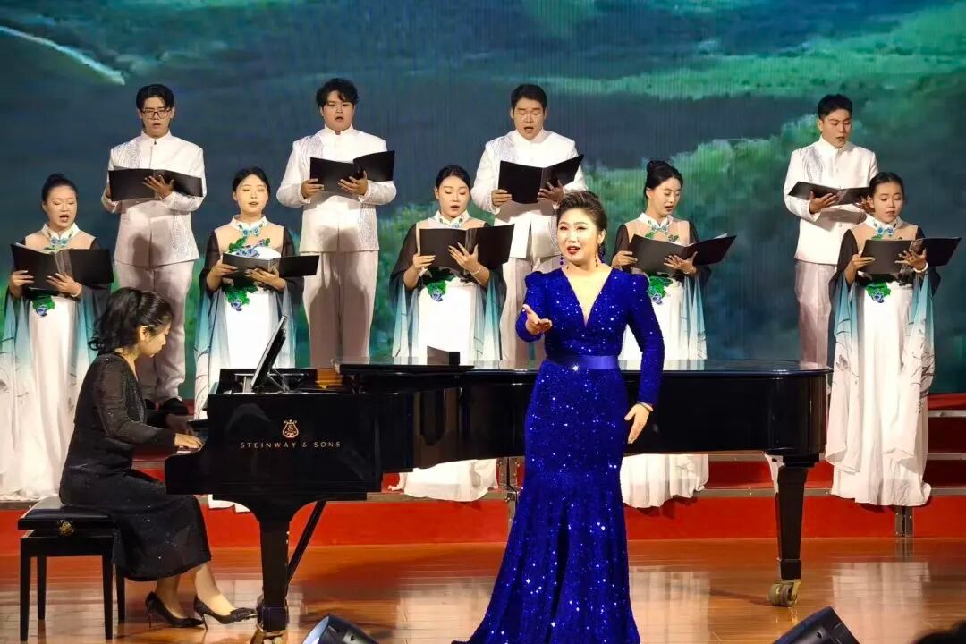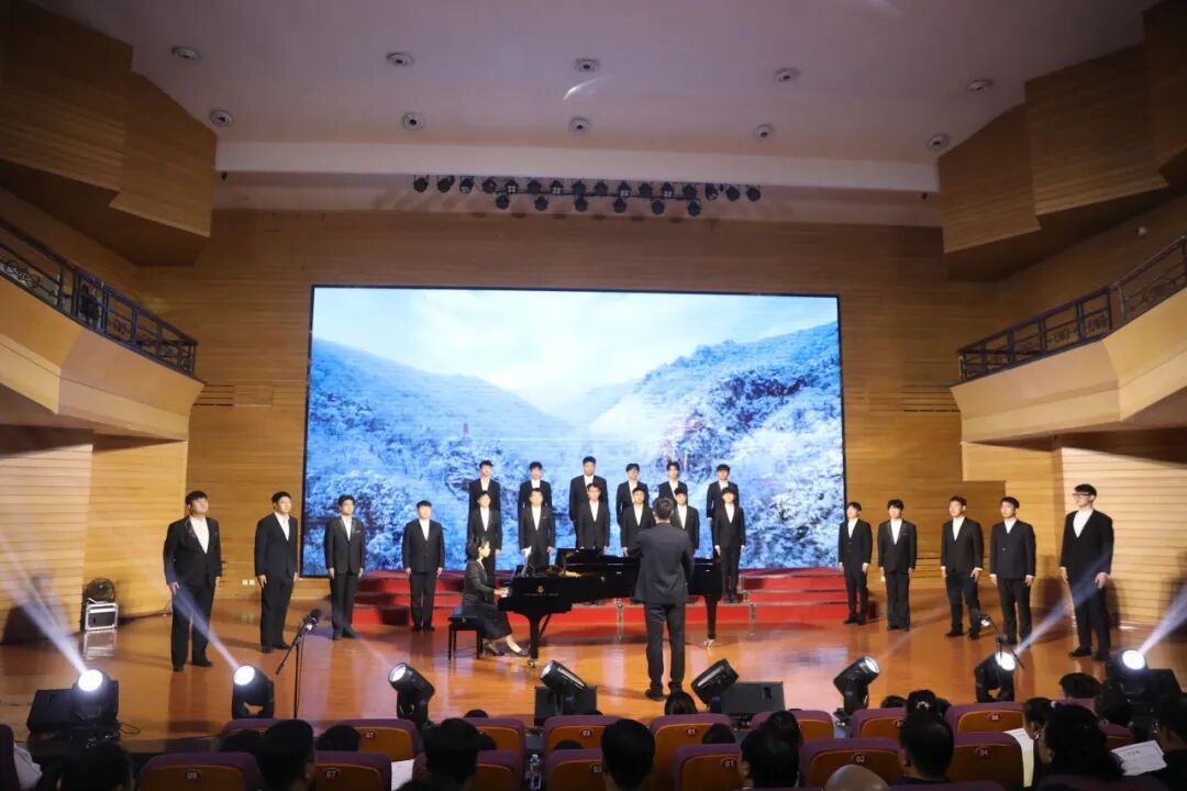 本次展演以时间为脉络层层铺展,串联起烽火岁月到建设年代的精神图谱。声乐歌剧系学生率先唱响《露营之歌》,让烽火岁月里的信念之声穿越时空、直抵人心;陈思斯的钢琴独奏《松花江上》,则以悲怆琴音诉说山河破碎时的家国之痛,引得全场共鸣。民族声乐系学生演绎的《毕业歌》《长城谣》,将青春热血与民族情怀熔于一炉,唱出了中华儿女的不屈风骨;音乐教育系的诵与歌《北大荒人的歌》,又将时光拉向建设年代,以深情朗诵与嘹亮合唱交织出奋斗者的壮志豪情;从丁枫霖等演绎的《乌苏里船歌》中,能清晰听见黑土地的自然回响与人文底蕴;杜振溶、张津赫唱响的《我为祖国献石油》,则以豪迈歌声致敬工业建设中的开拓者们。周冰倩等的古筝重奏《嘎仙洞・梦幻》,以古韵雅音营造出悠远深邃的意境;何亚男等演唱的《龙江情》,则用质朴旋律直白流露对这片黑土地的深切眷恋;2024级舞蹈编导专业学生带来的《再望这片黑土地》,以灵动舞姿将赤子深情具象为鲜活的肢体语言,引人动容。高心远的《英雄的哈尔滨》与宋冰冰的《哈尔滨我眷恋的故乡》,一曲颂扬英雄过往,一曲抒发故土深情,二者遥相呼应、动人心弦;民族声乐系学生登台演绎的《假如今天你还在》,以专业的民族声乐技巧把控气息与情感,既传递出对先烈的深切缅怀,又将铭记历史、传承先烈精神的赤诚融入旋律。最后,李金柱与民族声乐系男生合唱团共同演绎的《把青春压进枪膛》,以激昂旋律将先辈精神与当代青年的使命担当紧密相连,让整场展演在铿锵有力的力量感中圆满落幕。