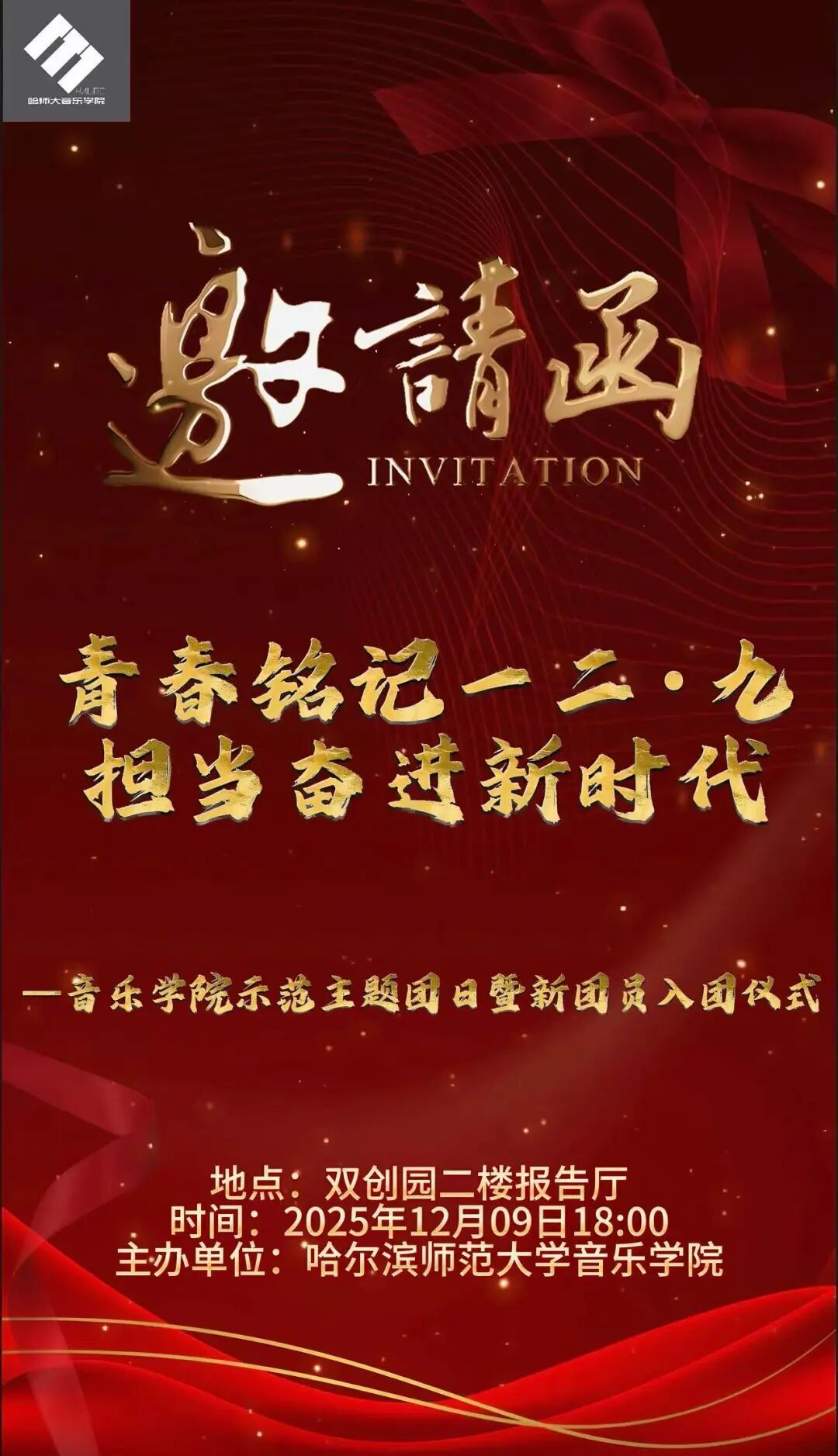 邀请函丨“青春铭记一二·九,担当奋进新时代——音乐学院示范主题团日暨新团员入团仪式”邀请函
