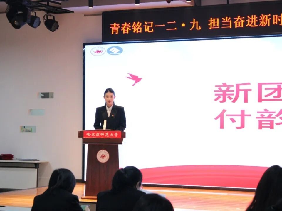 本次活动分为两个环节。第一个环节,以“青春铭记一二・九,担当奋进新时代”为主题的示范主题团日活动。第二个环节,举行2025年下半年新团员入团仪式。