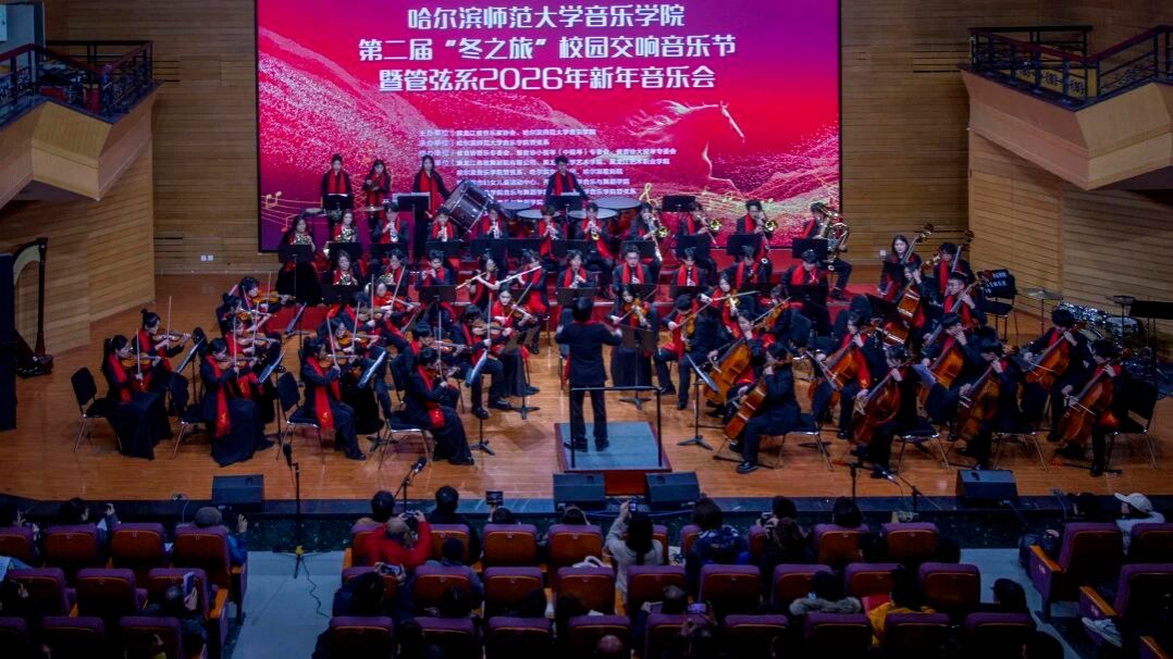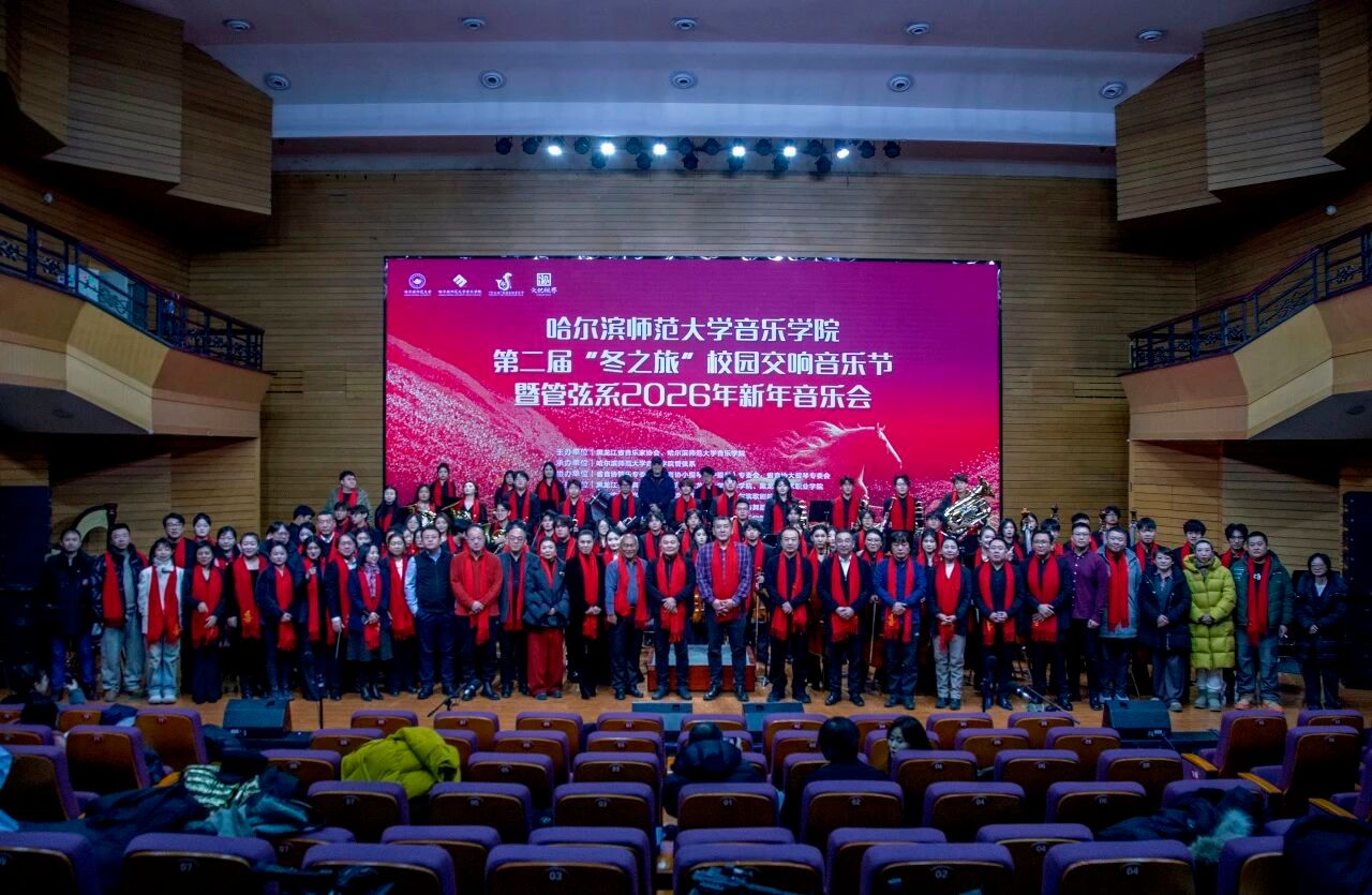第二届“冬之旅”校园交响音乐节暨管弦系2026年新年音乐会的成功举办,不仅为师生搭建了高水平的舞台实践平台,更以艺术实践践行美育初心,进一步彰显哈尔滨师范大学音乐学院在音乐人才培养、艺术传承创新领域的坚实成果。未来,学院将继续以习近平文化思想为指引,深耕音乐教育主业,深化艺术实践教学改革,推出更多增强人民精神力量的艺术成果,为培育新时代文艺人才、推动区域音乐文化发展、助力哈尔滨 “音乐之城” 建设注入强劲的高校力量。