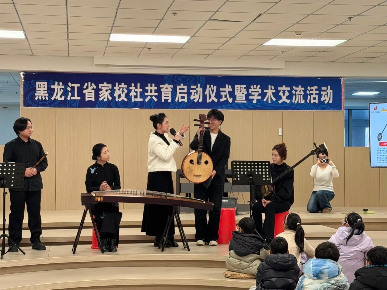 12月16日,黑龙江省家校社共育启动仪式暨学术交流活动在哈尔滨师范大学江南校区艺术大厦意境空间隆重启幕。活动以“协同赋能、以美育人”为核心主旨,汇聚省内外教育界领导、专家与一线同仁,哈尔滨师范大学心聆辅导员名师工作室携“黑土红音·心聆共育”社区儿童音乐样板公益课精彩亮相。活动通过主旨分享与公益课堂现场展示相结合的创新形式,搭建家校社协同育人沟通新桥梁,为龙江教育高质量发展注入鲜活力量。