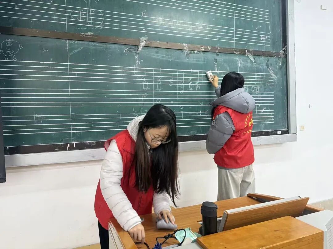 音乐学院青年志愿者协会开展“落叶归序·教室焕新”活动